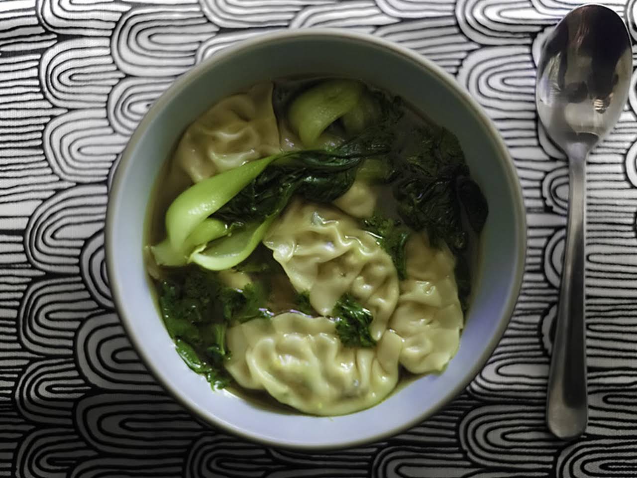 Faux Pork Wonton Soup With Bok Choy